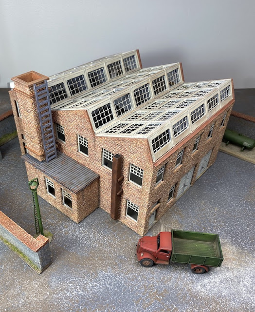 I want to add a few signs to the building exterior but these will be temporary fixtures because I envisage using the factory in a number of locations, be it the docks of Singapore or Hong Kong; any number of countries in north west Europe - France, Belgium, Holland or Germany, and, also on the eastern front in Russia. So for now I'm calling it finished.