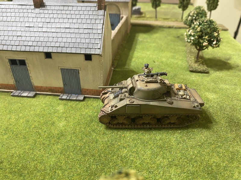 A Sherman arrives to the left of the road behind the farm. I want to bring that into a position to provide fire support for the defending infantry.