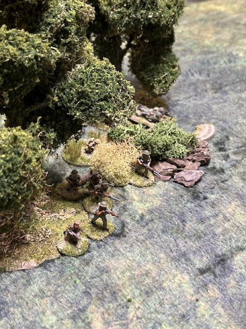 In the British phase the Havildar on the right flank orders the section forward out of the woods.