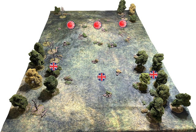 The patrol phase is fairly straightforward and the Japanese are positioned to cover all sides of the main hill. While the British also have deployment options across the table this is a position that will prove difficult to outflank.