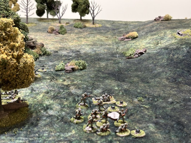 The early phases of this one saw the British deploy and approach the hill ready to mount an assault. The Japanese simply watched and waited. I don't think there's any need to track those individual movements and deployments phase by phase, so I'll provide just an overview.