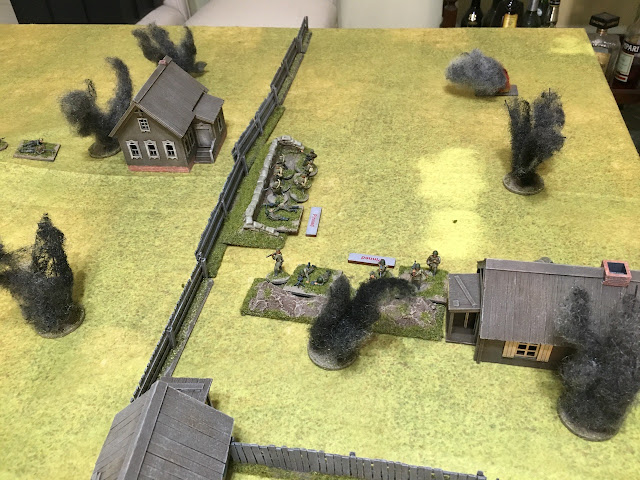 The storm of fire results in 26 hits, leading to three dead and 12 shock. To make matters worse, the final Russian gesture is to hurl a few grenades and that's enough to break the squad. They fall back 15" and German FM drops to 8. That hurt, and this squad will be ineffective for some time.