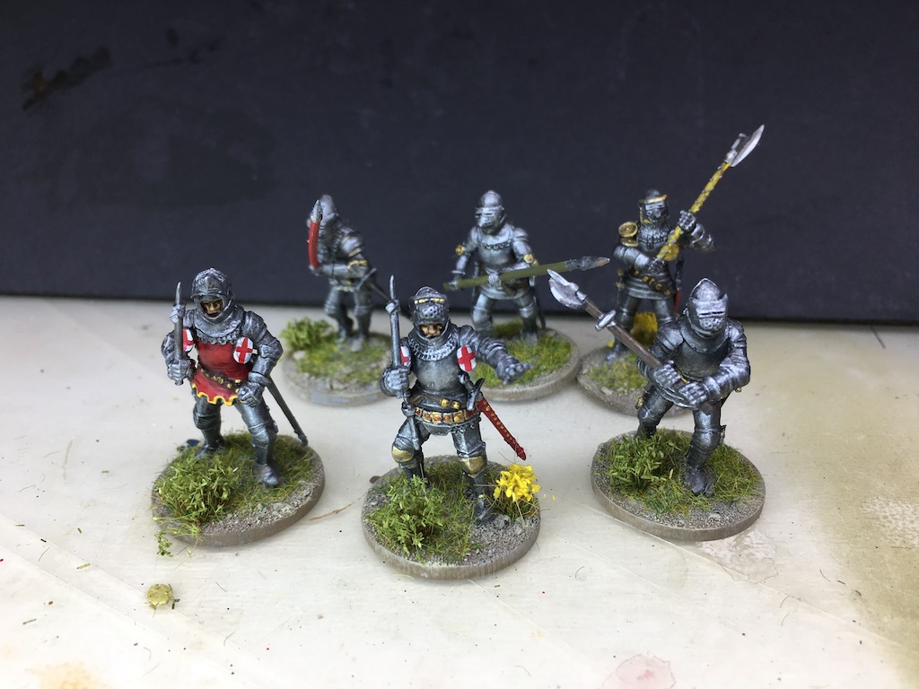 One project that has been dormant for a while is a small medieval force for skirmish gaming, this time in 28mm.  I had something like Dan Mersey's Lion Rampant rules in mind when I first acquired the figures.  I started an English retinue from the Agincourt period based on the lists in the Lion Rampant rule book, something possible with a single box of Perry's Agincourt English Army.  This will give you two units of Archers and two units of Men at Arms.  So far I've completed the Men at Arms and one unit of Archers.  Once I've completed the remaining dozen archers they will need some opponents and I'd like to think I can put together a suitable French retinue this year.