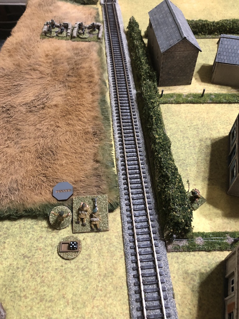 Over by the railway the squad Obergefrieter rallies off a point of shock and then brings the LMG team over the railway line to benefit from the cover offered by the small embankment.