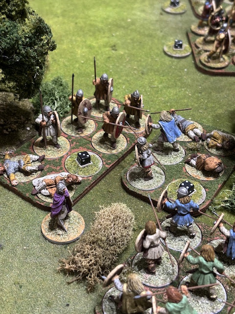 The first round of combat ends with both sides suffering two killed and shock. The Saxons come off worse in the second round and lose another man while the Britons are unscathed. Despite the losses and shock, both sides remain engaged.