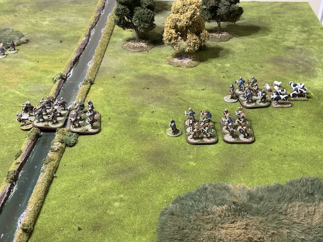 With his prestige and the wealth of his people at stake, Cadwallon calls his men to arms and they rush to intercept the raiders. The Saxons, with their ill-gotten gains, must make their away across a stream and off the far edge of the table.